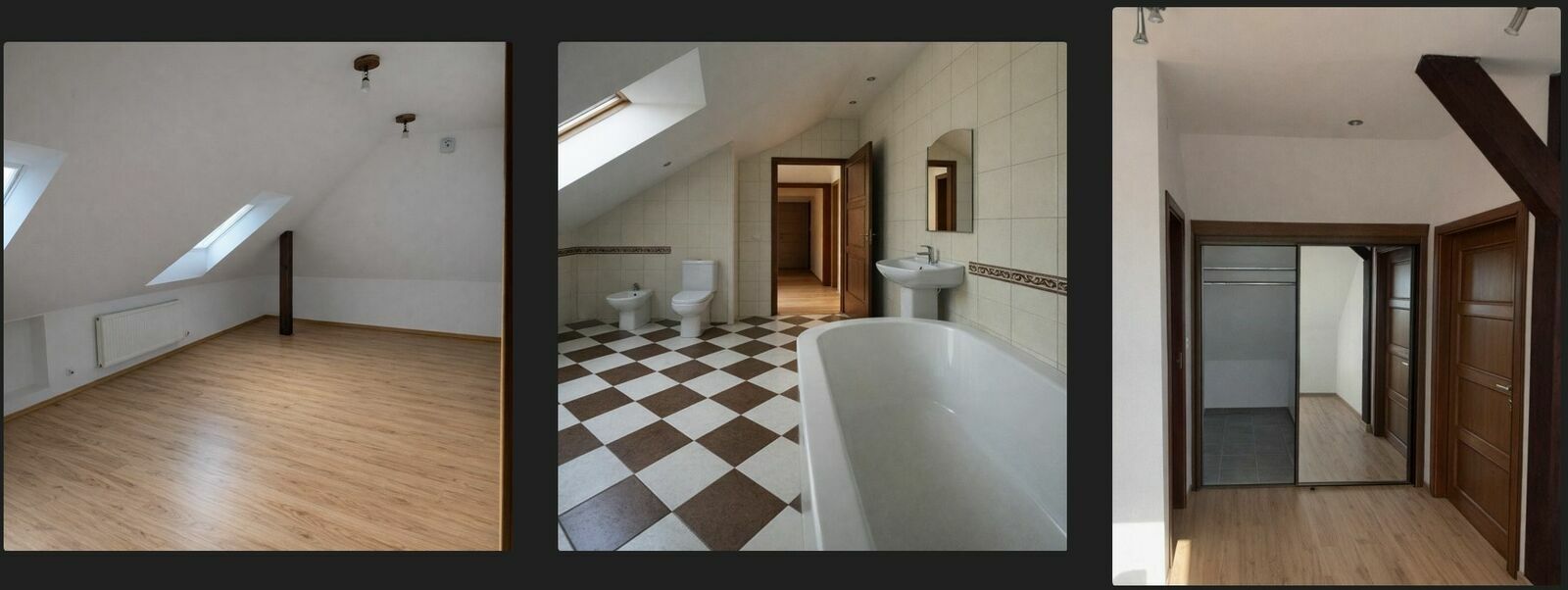 - 3 pokoje (idealne na sypialnie / biura / pokoje dzieci) 13,5m2, 16m2, 12m2